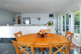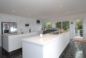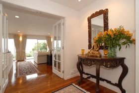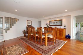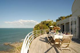 You will never go on holidays again after living in this slice of heaven. Quietly hidden in lush native rain forest, this resort - like home was designed by the renowned international firm Architectus. Built around a soaring light - filled atrium and dramatic Carrara marble stairs, the Florida - style home filled with its beautiful timber parquetry floors and graceful curving walls featured in NZ House and Garden. Perched above the Americas Cup Course, the subtle nautical theme of the home makes you feel as if you are on board a luxury cruise liner. Vast sundrenched living areas flow onto sweeping decks only meters above the waves. This clifftop sanctuary boasts breathtaking uninterrupted views from Gulf Harbour to Waiheke Island and Coromandel Peninsula. This stunning 520 m2 home offers luxurious living areas, formal dining, four large bedrooms, study, five bathrooms, and the ultimate entertainers kitchen with marble floors and all day sun. The property also offers triple car garage, electronic security, two open fireplaces, heated pool, spa, sauna, complete home theatre, library and gym on half an acre.