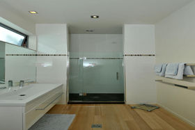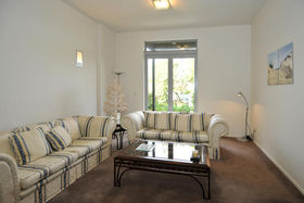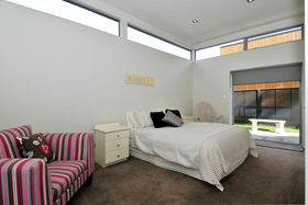 Downstairs two large bedrooms open directly out to a sunny private courtyard. A second living area provides guests with their own space.
