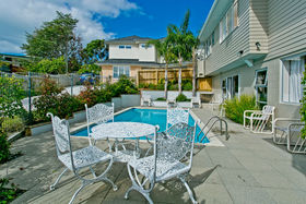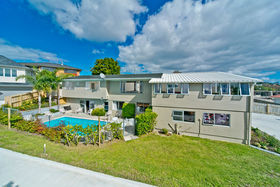 Set on a 961m2 freehold section this delightful family home located just a short stroll from beautiful Waiake Beach enjoys a fabulous elevated position and all day sun. This recently renovated home is set well back off the road and features spacious living and dining areas upstairs and an attractive kitchen. A second large living area downstairs opens to a superbly sunny private swimming pool complex. There are five bedrooms, four bathrooms (including two ensuites), a double garage and off street parking. Excellent school zones including Torbay School and Long Bay College. Close proximity to beach, shops, cafes, Medical Centre and transport. Easy access to Albany retail and entertainment complexes and motorway access for the CBD. This property is essential viewing!