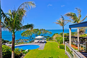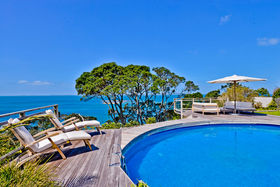 Expressions of Interest Close Thursday 4 December 2014 at 4pm (unless sold prior) Set on a 1416m cliff top section in sought after Sharon Road this delightful family home enjoys sweeping sea views over the Hauraki Gulf from Rangitoto Island around to Whangaparaoa Peninsula and the Tor. Architecturally designed by George Patterson the home has been totally modernised over the past five to ten years. Gracious light filled living and dining rooms maximize the gorgeous views and there is a well appointed designer kitchen with a large island. The home opens effortlessly to decks, a resort style swimming pool complex, fabulous landscaped gardens and there is a shelled 'beach' deck on the cliff. The layout of the home offers wonderful flexibility with two spacious bedrooms plus an office and a stylishly tiled bathroom on the main living level. Downstairs there is a self contained area for guests with a third generous bedroom, a stunning living area (or fourth bedroom), a kitchenette and sensationally relaxing spa style bathroom. Closed in double carport, off street parking. Stroll to beach.