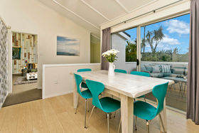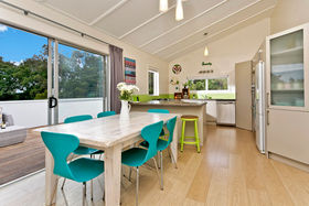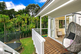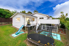Your Next Chapter Begins Here Classic late 60s design stands the test of time in this tastefully updated, light-filled five-bedroom family home. Sitting elevated on a large property at the edge of a beautiful native bush reserve with a walkway to the primary school, the birdsong is amazing. Two adjacent living areas (lounge with gas fire) and the master bedroom suite extend to sundrenched north-facing decks where you can soak up the view. Kids will love the slide down into a fantastic fully fenced playground. There is good separation between big childrens rooms and both the master and guest suites on lower levels. The latter both have their own bathrooms while the family bathroom by Spazio Casa is gorgeous featuring a sculptural freestanding bath and contemporary chandelier. Bedrooms all have big wardrobes (the master a step-in) and there is abundant storage throughout. As well as an internal access garage with workshop, a huge covered parking area is a wonderful wet weather play area for children. Zoned for Willowpark School and Northcote College. Enjoy family fun forever.