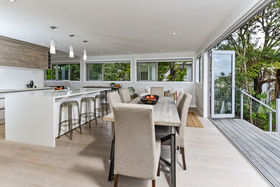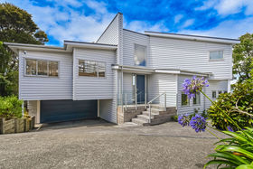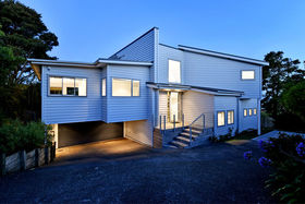 Set back from the road at the end of a quiet driveway, an exceptional executive style family home offering lifestyle and privacy. Redeveloped in weatherboard and beautifully modernised, the design and quality details of a brand new home. A huge open plan casual living area with an outstanding kitchen connects to the main deck and garden, a great playground for your kids. Elevated views to Rangitoto Island and the harbour from each level. The massive master bedroom, ensuite, wardrobe occupies the entire upper level and has its own private deck. An additional three double bedrooms, bathroom and multiple living spaces create practical family living. Double garage, off street parking and plenty of storage. An exclusive and desirable location with nearly shops, transport and schools. VACANT - IMMEDIATE POSSESSION AVAILABLE.