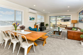Fabulous, four double bedroom, family home in a great street. An expansive entrance and double width stairs invites you upstairs to one level living. Quality finish and permanent materials, inside and out, and the great layout are immediately apparent. High 2.7m stud ceilings and large windows allow natural light to stream in. A great flow from the large informal lounge and dining onto an expansive entertaining deck and garden for the ultimate kiwi lifestyle. Separate formal lounge, gourmet kitchen with walk-in pantry and breakfast bar, master ensuite and walk-in wardrobe, double garage, extra parking for two cars and a boat complements the picture. Section size 522m2. Excellent buying in a convenient area, near to all amenities and handy to the motorway.