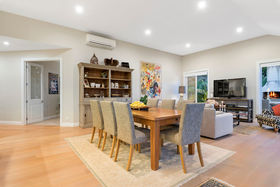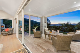 Flowing perfectly to outdoor undercover alfresco dining with open fire.