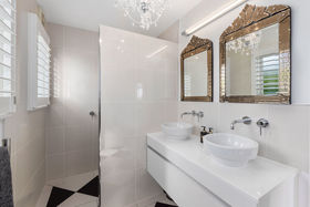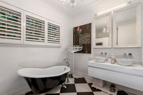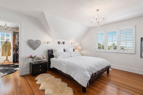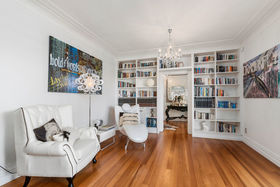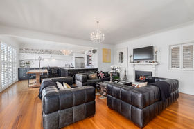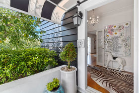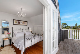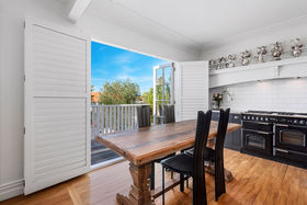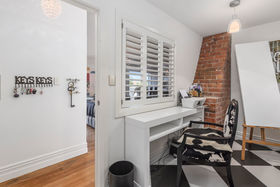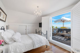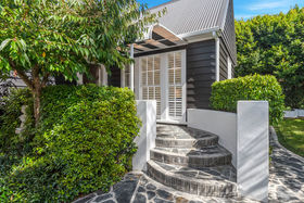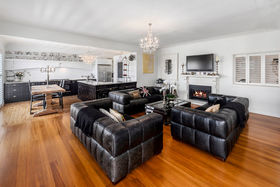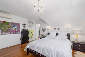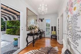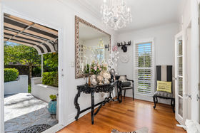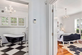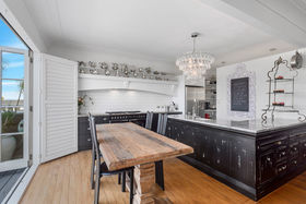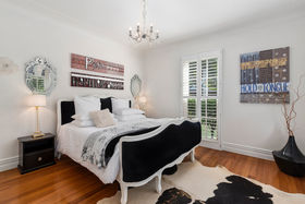 An elegant top to bottom makeover of this home by our clients has culminated in modern and funky interiors, with original wooden floors, Sante Fe shutters and sparkling chandeliers throughout this unique and special home. Walk through the front door and entryway journeying through the French doors to the open plan living and dining areas with its stunning designer kitchen and walk-in pantry and imagine conversing with your friends gathered around the fireplace as you cook and then dine together also on the entry level you will find a bedroom, full bathroom, office and a covered private deck.
