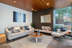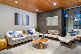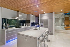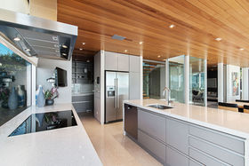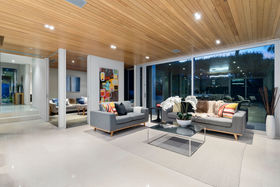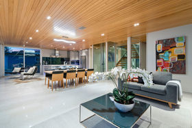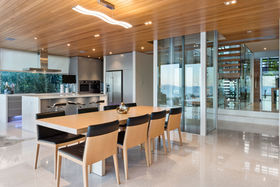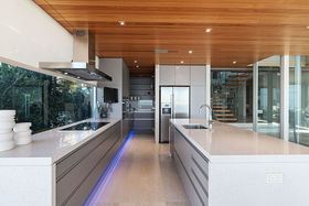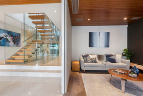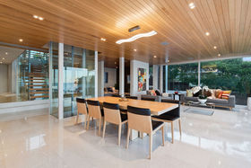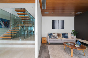 In a quiet beachside cul-de-sac and set on a freehold site of 1,480 sq. metres the 493m2 architecturally designed home by Simon Carnahan exudes a casual confidence of robust, yet sleek, uncomplicated architecture. Built new some nine years, the construction incorporated many industrial elements to withstand the many moods of the weather with unobstructed ocean vistas across Takapuna beach. Drawing the eye out to the sailboats and passing cruise ships beyond the sand ... it will be the ultimate viewing platform for the America's Cup Races.