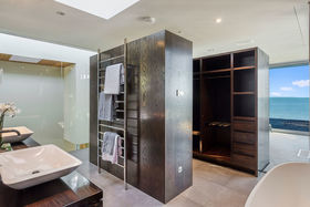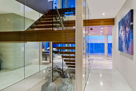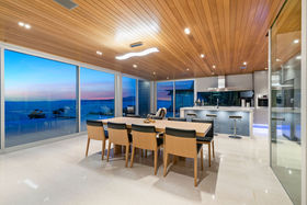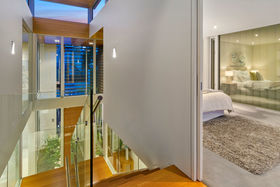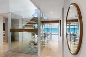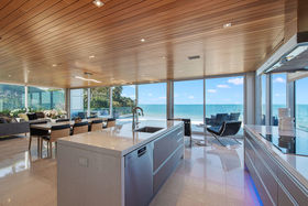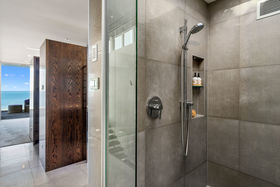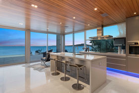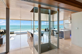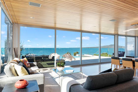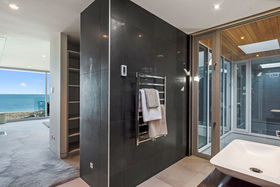 Beyond the pivot front door you are greeted by open plan living with kitchen, dining and lounge opening on to the deck and pool, all framed by the wide frontage windows that provide spectacular ocean views emphasising this amazing position. The chef's large kitchen (with walk in pantry), dining and living areas spill onto the private deck and heated swimming pool with infinity edge that blends into the ocean. On the same floor there are also two bedrooms, a bathroom and a winter lounge with fireplace. Move upstairs via the custom glass lift to all levels or the glass enveloped staircase and you will find 2 luxurious master bedrooms with gorgeous views, each with their own en suites and walk through wardrobes. There is also an additional bedroom suite upstairs with a walk in wardrobe and full bathroom, and this bonus/flex area has a separate entrance and could also be used as office, media or guest suite perhaps ... you decide.