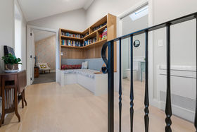 Through a study nook, the sumptuous master suite with walk-in wardrobe and ensuite is a treat for parents.