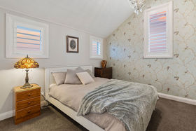 Then there is a separate two-level wing which houses two more bedrooms, a family bathroom and a bespoke reading nook on the upper level. The ground floor of this wing contains extensive garaging which can accommodate 3 vehicles and all your toys, as well as a workshop which could easily convert to a fourth bedroom. There is plenty of offstreet parking for your boat or campervan.