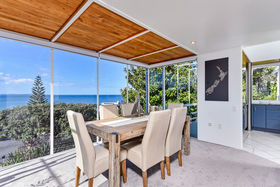From sunrise to sunset, this is a home that captures every facet of its spectacular surroundings. Architecturally designed by Claude Megson, situated at the end of a peaceful cul-de-sac, the home has three living areas, three bedrooms, three bathrooms, open plan dining, spacious kitchen, double garage, all on three levels. Downstairs living can be completed to provide a separate flat/studio with its own entrance and power. There are multiple decks and a private, mature garden and courtyard. The sweeping northerly sea views are just sensational!