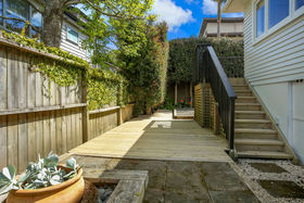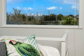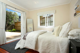 Be greeted by a large outdoor deck, fully secure for infants and in complete privacy. This area is great for BBQ's and entertaining family and friends. Step into the open plan living where wide wood floors and French doors offer character. A lovely renovated bathroom and kitchen await. The icing on the cake is the extra room above the master bedroom. This would be perfect for a nursery, office or hobby room. From here you have a lovely view of the city and sky tower. The section is fully fenced with an attractive low maintenance garden, giving you more time to enjoy the beach close by.