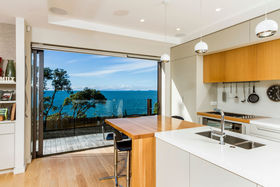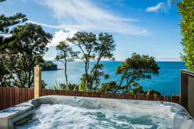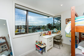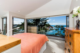 Ground floor entertaining offers lovely solid American Oak floors throughout which blend nicely with the cedar on the exterior. All windows are double glazed and there is ducted air conditioning, underfloor heating and a gas fireplace to take care of constant temperature changes. A large MBD designer kitchen with scullery flows to a spacious dining and lounge area contained within one space for easy entertaining. This area benefits from expansive wide Gulf Views and intimate views of Murrays Bay Wharf. Separate to this is a functional media room with a drop down projector screen. This space has an ensuite and a pull out "New York" style bed to make it into a great fifth bedroom or guest suite. Upstairs there is an expansive master suite with breath-taking views which flows out to a spacious deck with its own spa. A lavish ensuite and walk-in wardrobe make this a gorgeous retreat. You have space if required to house a lounge setting but this is currently being used as an office.